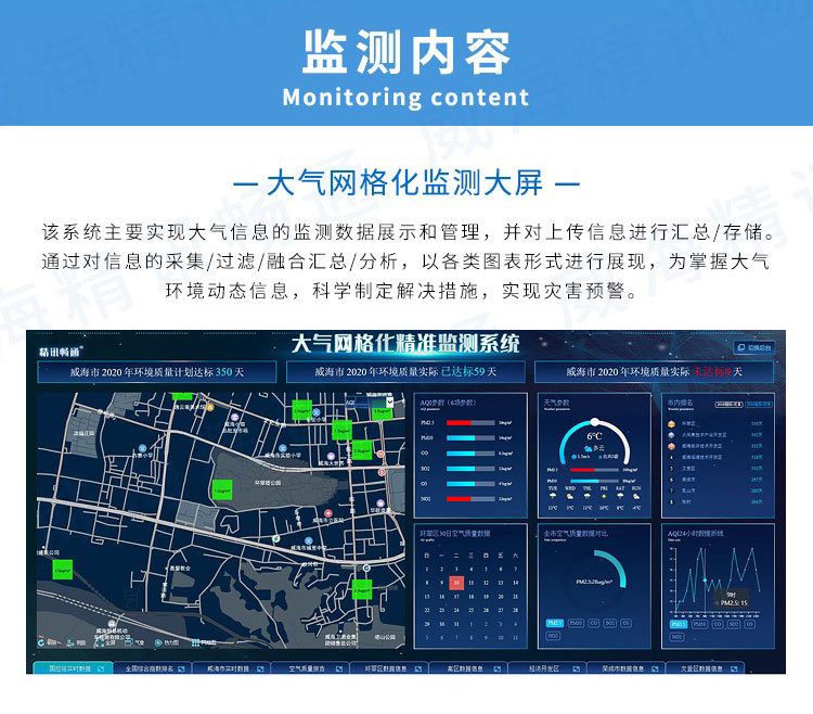 2、大氣網格化精準監測系統:實現根據不同區域用戶登錄而展示不同信息,實現當前城市市內年年累計綜合指數排名、區域綜合指數排名統計展示;