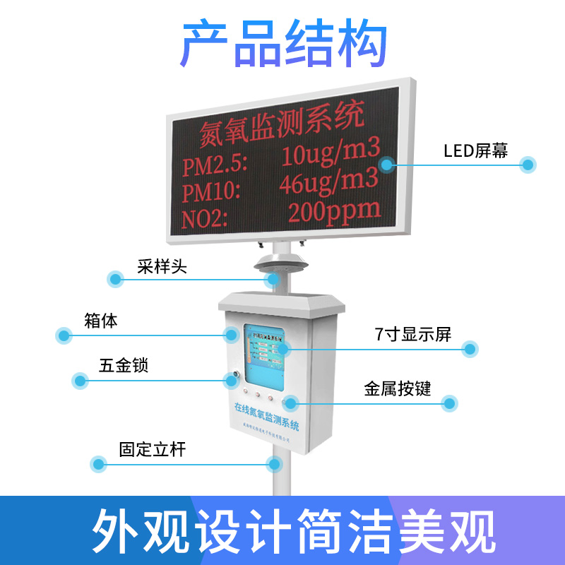 2、氮氧化物監(jiān)測系統(tǒng)清晰液晶屏顯示七寸液晶屏顯示,讀數(shù)方便,一目了然。支持RS485/2G/4G多種通訊方式,無需數(shù)采儀直接上傳云平臺。