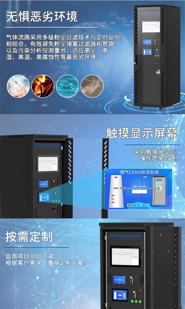 煙氣分析儀的氣體流路采用多級粉塵過濾技術與定時反吹相結合,有效避免粉塵堵塞過濾器和管路、以及污染分析儀測量池,適應高塵、高濕、高溫、高腐蝕性等最惡劣環境。