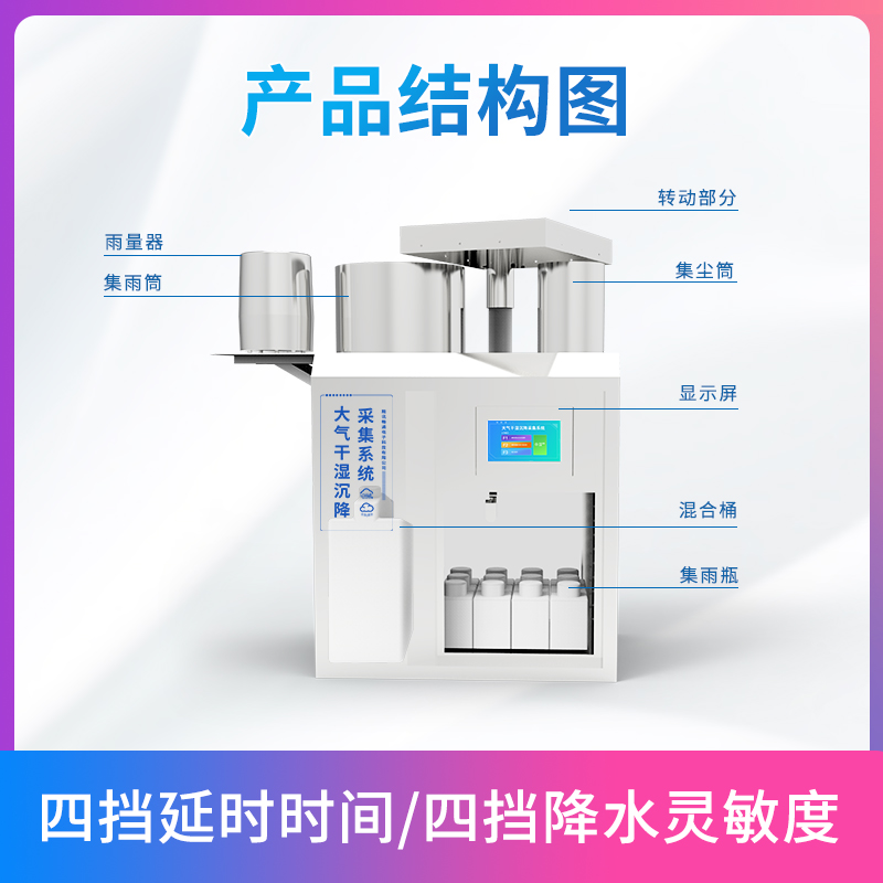 大氣干濕沉降系統是一款可以自動采集降水或降塵的大氣環境監測儀器。大氣干濕沉降系統內置光學雨量計,具有高精度光學探頭感應識別功能,晴天關閉集雨筒開啟集塵桶收集沉降,雨天關閉集塵桶開啟集雨筒收集雨水。大氣干濕沉降檢測儀可在線遠程上傳監測數據,用戶可以通過云平臺遠程實時查看數據,是一款智能一體化產品。具有很強的抗干擾能力,耐腐蝕性能強。