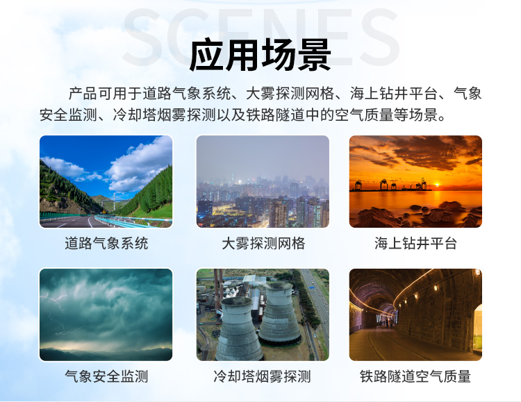 大霧能見度監測儀是可以連續測量輸出大氣能見度的空氣質量傳感器。大霧能見度監測儀具有數據自動管理功能,可將監測的數據存儲到數據存儲器中,可儲存一個月的數據。能見度儀采用RS485與監控計算機通訊,把監測數據上傳至管理者那里,并給出狀態報警指示。能見度傳感器可用于道路氣象系統、大霧探測網格、海上鉆井平臺、氣象安全監測、冷卻塔煙霧探測以及鐵路隧道中的空氣質量等場景。