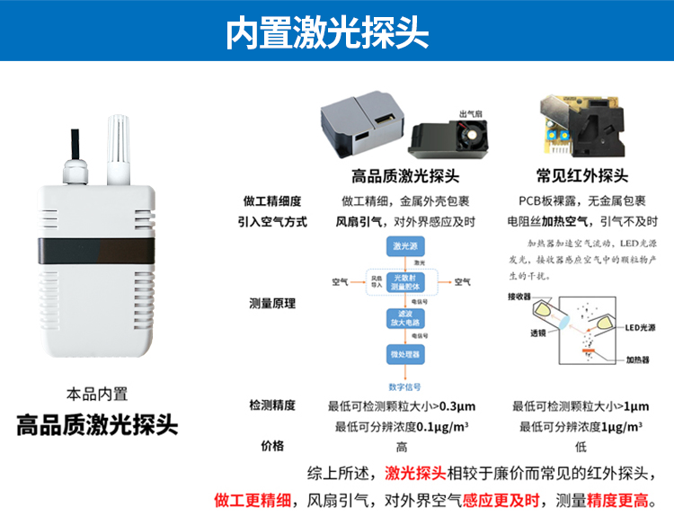 4、空氣質量傳感器內置優質探頭:采用高密度材質外殼,耐磨防摔,內置優質探頭,精度高,功耗低,范圍廣。