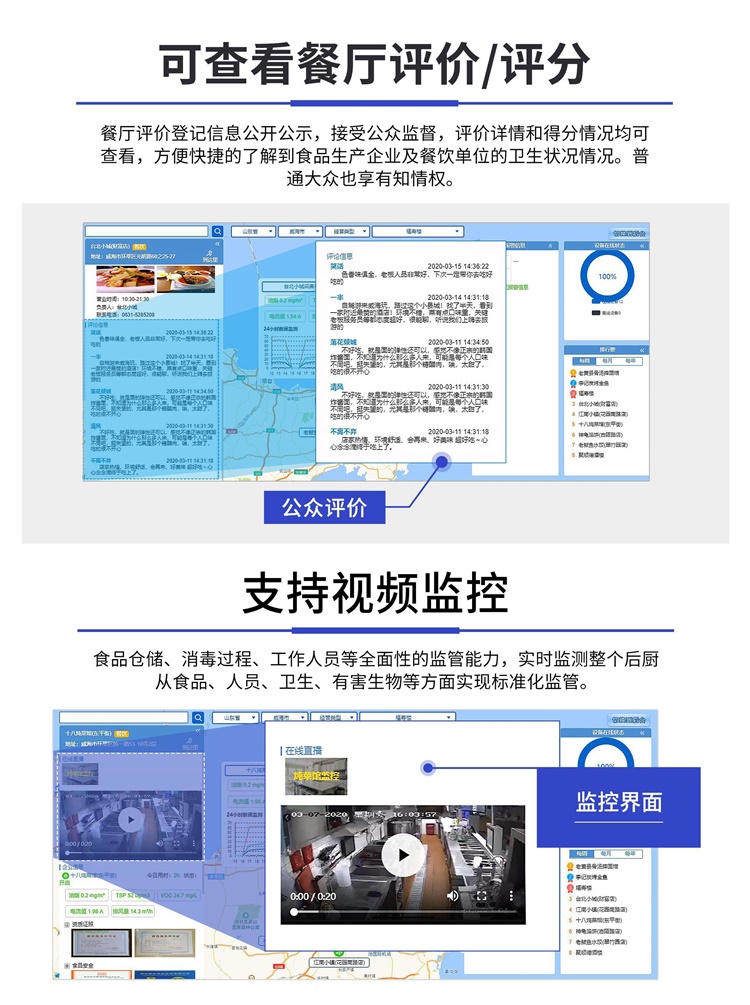食品倉儲、消毒過程、工作人員等全面性的監管能力,實時監測整個后廚從食品、人員、衛生、有害生物等方面實現標準化監管。