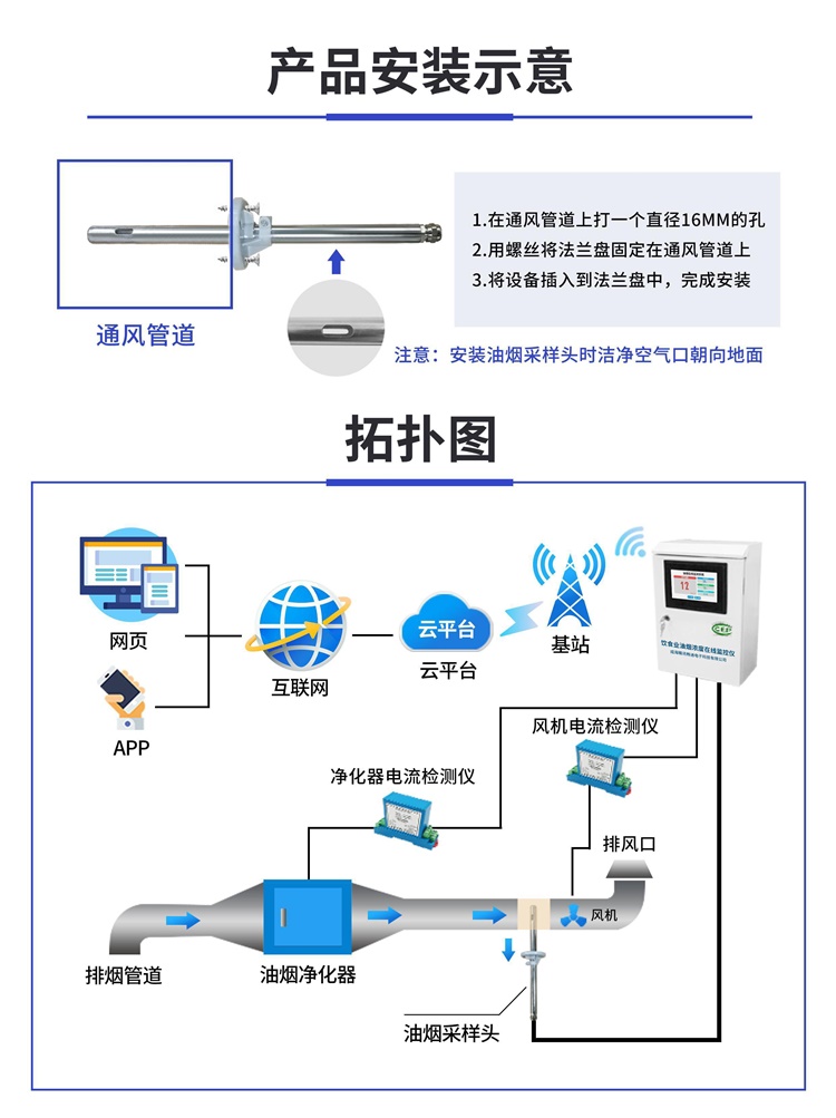1、集嵌入式技術/互聯網技術于一體:油煙在線監測儀可對餐飲企業油煙排放濃度、以及現場凈化器、風機的運行狀態、管道風量等參數進行7X24小時全天監測監控,可通過遠程數據檢測油煙濃度是否超標。