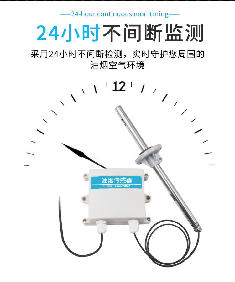 2、24小時不間斷監(jiān)測:油煙傳感器采用24小時不間斷檢測,實時守護您周圍的油煙空氣環(huán)境;