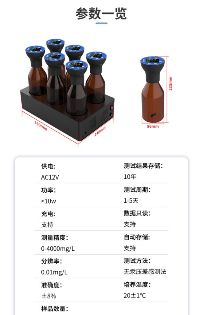 精訊暢通根據壓差法測量原理設計出了一款BOD5測定儀,用于水質檢測。該儀器能夠模擬自然界中有機物的生物降解過程,在密封的培養瓶內,通過上方空氣不斷補充樣品中被有機物分解所消耗的溶解氧。同時,儀器會去除有機物降解過程中產生的CO2,導致培養瓶內的空氣壓力發生變化。通過監測這一壓力變化,儀器能夠精確地計算出樣品的生化需氧量(BOD值)。簡而言之,這款BOD5測定儀能夠模擬自然界中的生物降解過程,并通過監測培養瓶內的空氣壓力變化來準確測定水質中的生化需氧量。