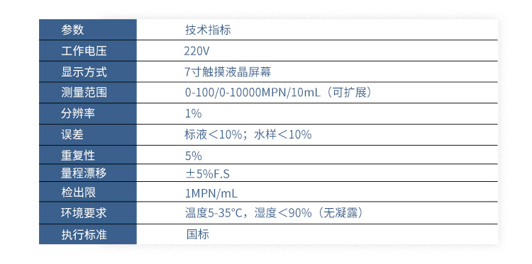測量范圍:0-100/0-10000MPN/10mL (可擴展)