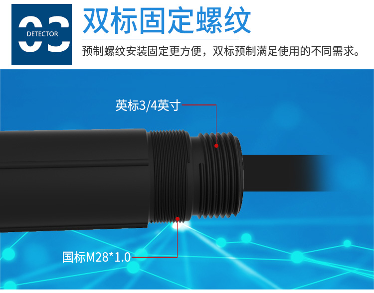 3、雙標固定螺紋:預(yù)制螺紋安裝固定更方便,雙標預(yù)制滿足使用的不同需求。