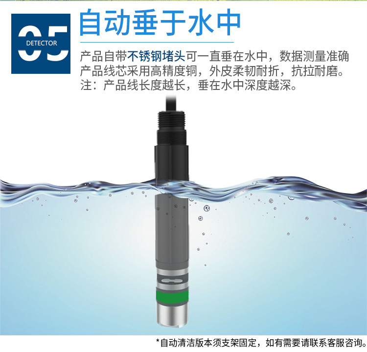 4、自動垂于水中:產(chǎn)品自帶不銹鋼堵頭可一直垂在水中,數(shù)據(jù)測量準確產(chǎn)品線芯采用高精度銅,外皮柔韌耐折,抗拉耐磨。產(chǎn)品線長度越長,垂在水中深度越深。