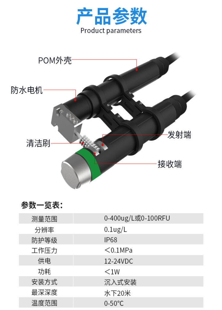 3、POM探頭:葉綠素/藍綠藻水質(zhì)檢測儀采用鋁質(zhì)外殼,無懼惡劣環(huán)境測量準確溫度。