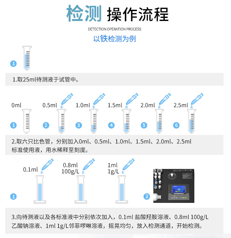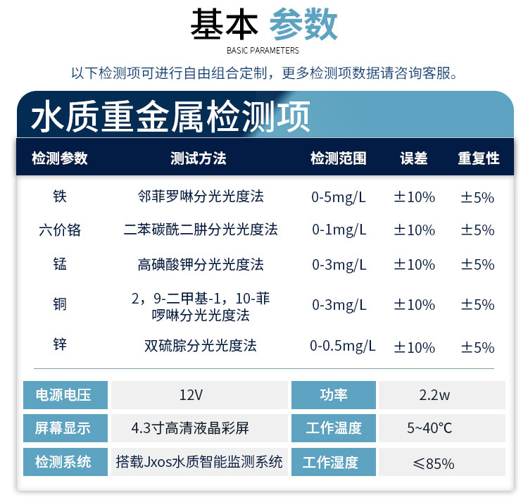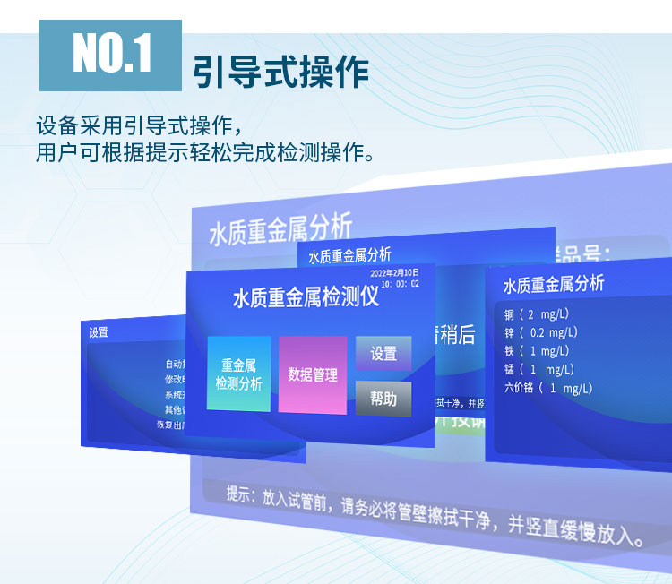 智能便攜式水質(zhì)重金屬檢測儀是精訊暢通采用進(jìn)口高精度光源和光電比色法來檢測水中重金屬含量的一款水質(zhì)監(jiān)測設(shè)備。智能便攜式水質(zhì)重金屬檢測儀可檢測水中鐵、六價(jià)鉻、錳、銅、鋅等重金屬離子的含量,采用引導(dǎo)式操作,為用戶配套與預(yù)制試劑,能夠簡單完成檢測操作。可廣泛應(yīng)用于企業(yè)污水、生活污水、地表水、科研院所、造紙印刷、冶煉鋼鐵等領(lǐng)域的水中重金屬檢測。