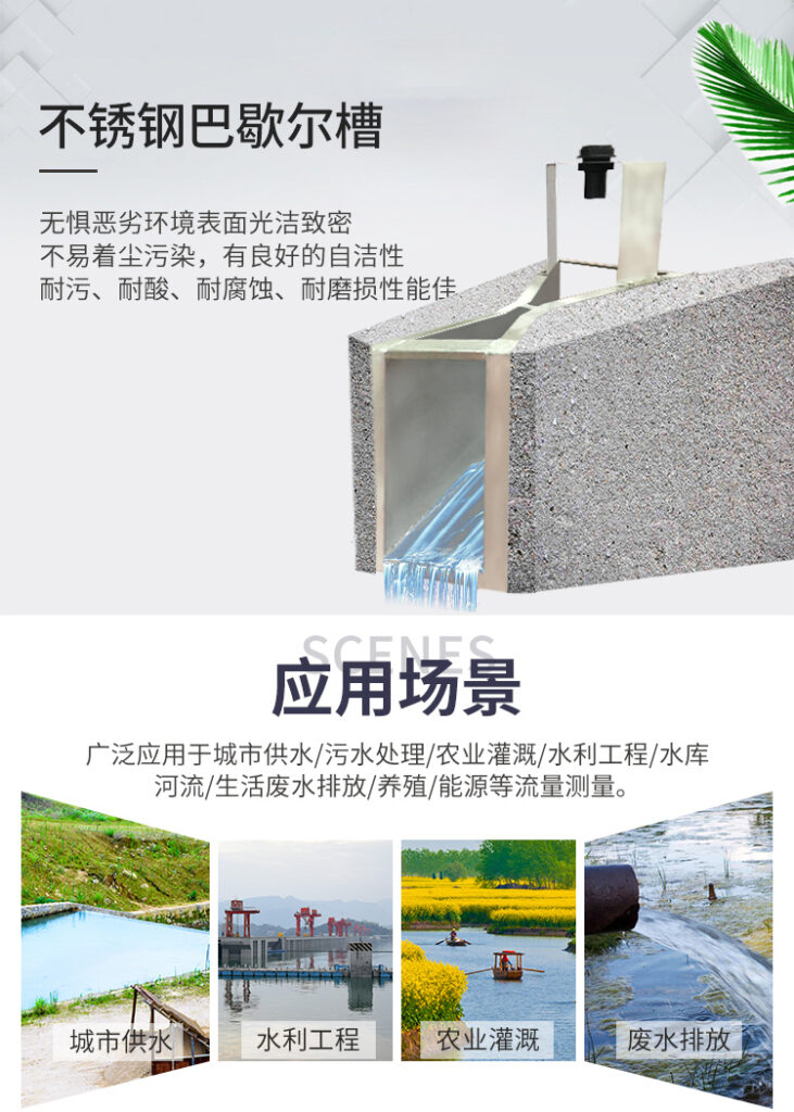 6、不銹鋼巴歇爾槽:無懼惡劣環境表面光潔致密不易著塵污染,有良好的自潔性耐污、耐酸、耐腐蝕、耐磨損性能佳。