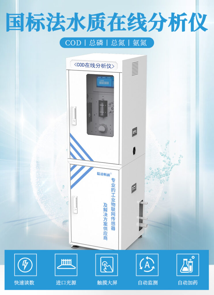國標(biāo)法水質(zhì)在線分析儀是一款以分光光度法為測量原理的水質(zhì)在線分析儀,監(jiān)測COD,氨氮,總磷,總氮,濁度,重金屬,高錳酸鹽,色度,硬度等參數(shù),自動(dòng)化程度高,試劑消耗低,可廣泛應(yīng)用于水環(huán)境自動(dòng)監(jiān)測站、自來水廠、地區(qū)水界點(diǎn)、水質(zhì)分析室、排放廢水和污水的水質(zhì)六價(jià)鉻含量監(jiān)測以及各級環(huán)境監(jiān)管機(jī)構(gòu)對水環(huán)境的監(jiān)測。