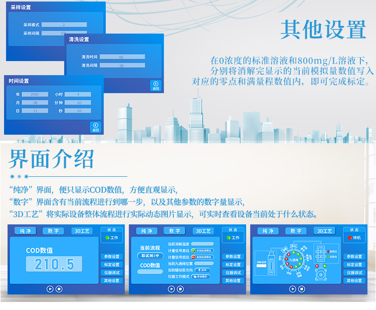 2、7寸觸摸液晶顯示屏:國標(biāo)法水質(zhì)在線分析儀具有參數(shù)設(shè)置、標(biāo)定設(shè)置、儀器調(diào)試、其他設(shè)置等;界面多彩化/操作簡單/一鍵操作;